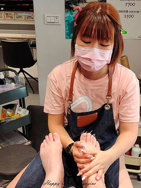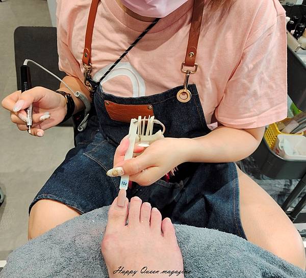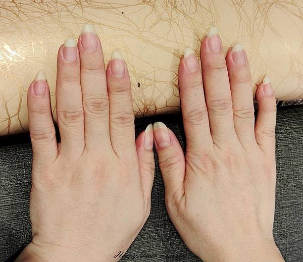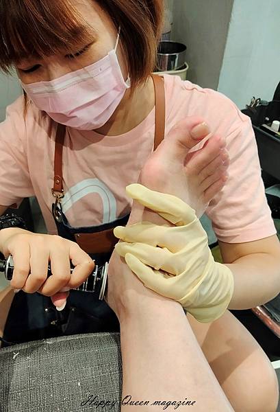 修型→磨硬皮、清理甲縫、徹底去除指甲邊緣硬皮、修磨甲形,並清除粉塵、皮屑做最後整理,整個過程,美甲師都相當細心、有耐心