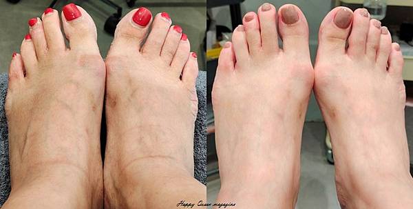 看看足部保養前後比一比(左前右後),真的差很大!