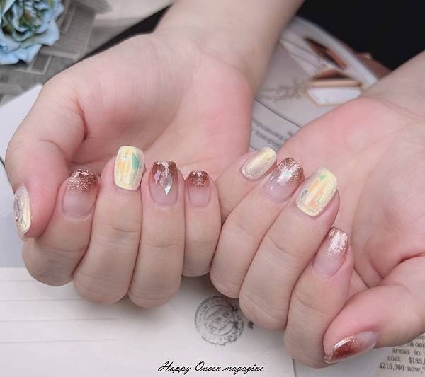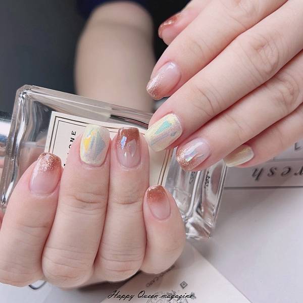 但我喜歡美甲師的建議,做了從沒做過、很百搭的漸層玻璃貝殼貓眼棕沙