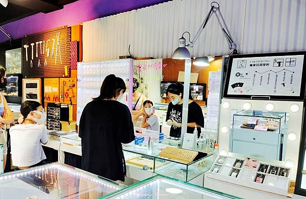 耳洞穿刺服務專區,陳列超多穿耳洞專用的耳環,別緻款式及多色專用耳針,讓我大開眼界,感受到『ART64 DESIGN』的用心~讓顧客穿耳洞時,也能覺到時尚又有趣!