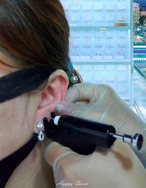 不到幾秒,我的雙耳已經完成穿刺,戴上閃耀奪目的大耳環了,好開心!