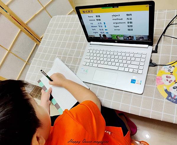 老師開始介紹遊戲玩法及程式英文,並要小學員抄起來,邊玩邊看,加強記憶與熟悉度
