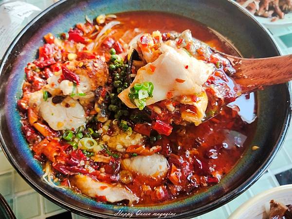 川香水煮魚$650,紅灩灩的,滿滿一大碗,引人垂涎