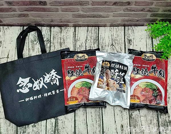 『念奴嬌-精緻紅燒牛肉冷凍湯料包.微醺紹興醉雞』採用不可微波的真空包裝,上面印有美味的食物圖片,看起來很吸引人