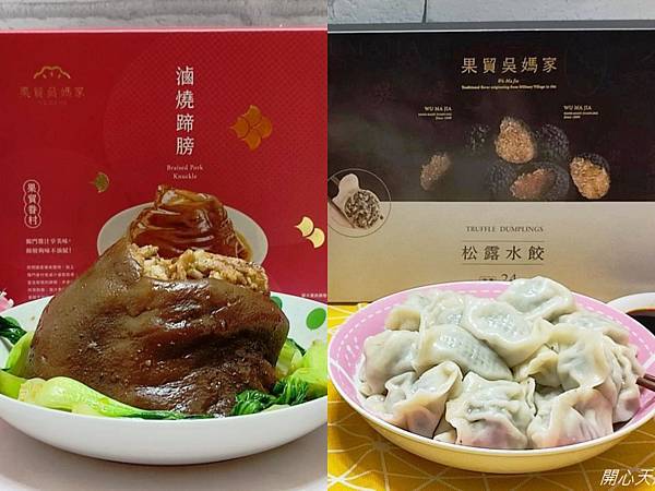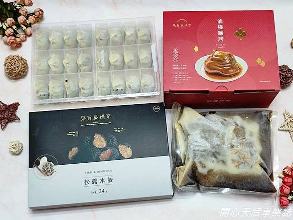 推薦重視過年儀式感的人,購買『果貿吳媽家-松露水餃.眷村滷燒蹄膀』,因為一上桌,就能感受到過年的節慶氣氛,而且色香味俱全!
