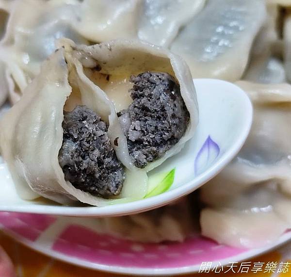 松露水餃,使用頂級特調白松露鹽醃製+黑松露醬提味+義大利空運當季新鮮黑松露及台灣在地契作牧場飼養健康豬,搭配『果貿吳媽家』獨家的雙Q水餃皮