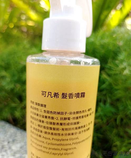 我一直想找髮香水,在經過比較後,買了『可凡希-髮香噴霧』,減少頭髮不良氣味,保濕、護色、增添髮色光澤,修護毛躁髮質,一瓶多用,不必使用好幾瓶,方便省事,符合懶人我需要的頭髮保養!