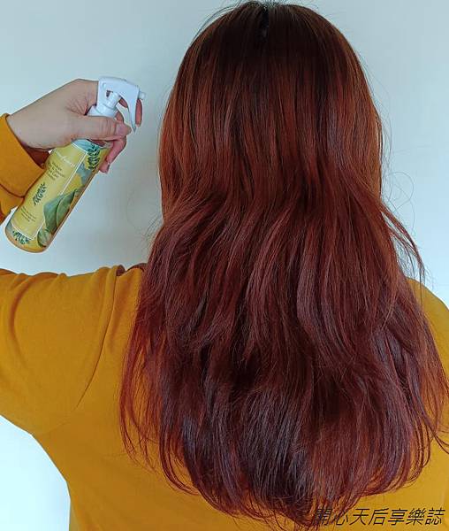 我現在出門前會使用『可凡希-髮香噴霧』噴灑於整頭,保濕頭髮,讓染後頭髮呈現亮麗光采