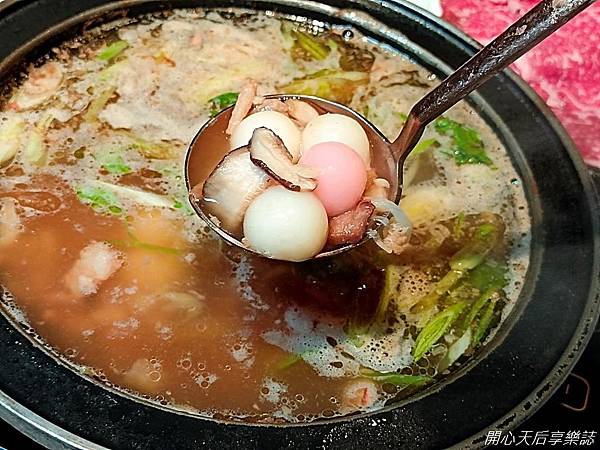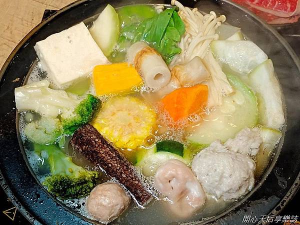 客家鹹湯圓鍋加入鮮蔬、火鍋料、牛肉片,更是散發出誘人的香氣,還帶有淡淡白胡椒香,喝起來也有淡淡的白胡椒味,卻不會搶走食材的原味