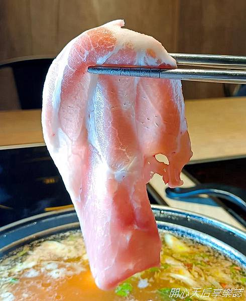 秘製爆炒料理油炒炸香蒜頭、薑片後,加入豚骨高湯,湯頭超級鮮甜,帶有淡淡酒香,喝起來好清爽,是特別適合夏天的鍋物!