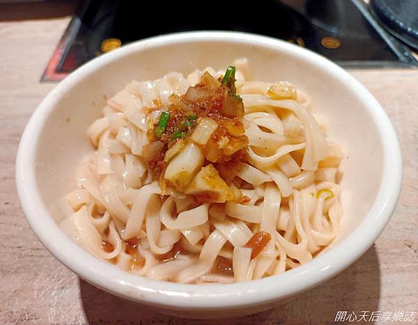 關廟拉麵,吸足了鹹香牛肉湯汁,淋上我調的沙茶醬汁,口味很像古早味乾麵,口感彈韌,樸實無華卻讓人一口接一口的一下子吃光光