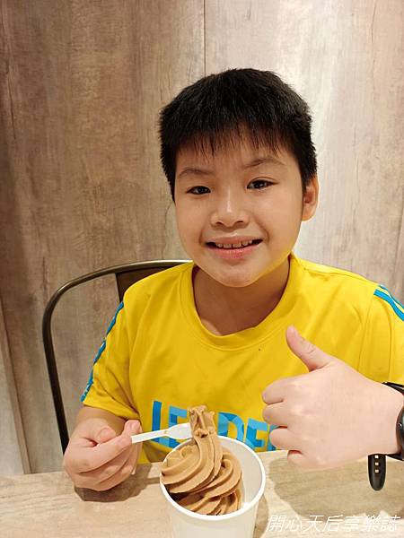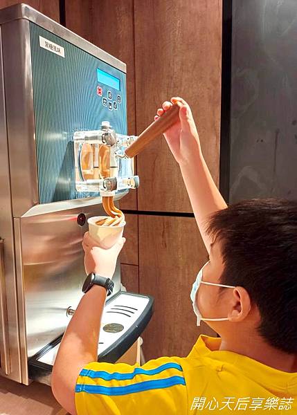 飯後,恩恩撐著飽肚,硬是要來霜淇淋DIY
