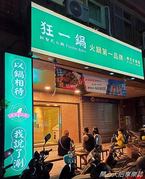 最近常到新莊工作,工作結束後常常是晚上10點多 ,肚子超餓,想吃火鍋當宵夜,但很多火鍋店都打烊了,還好我樂多多集團旗下的新台式火鍋『狂一鍋-新莊八德店』還開著,而且營業到凌晨1點,是夜貓子吃宵夜首選!最強台式火鍋-狂一鍋,共有10多款台式爆炒湯底,是融合台菜和火鍋的特色鍋物,最低299元起,就能吃到美味的爆炒鍋,附餐還是少見的台南在地關廟麵;現在更有優惠活動:22:00後入店,送活力梅花豬+無骨鮮雞腿/平日中午(11:30~14:00)來店用餐也加碼送,很讚!