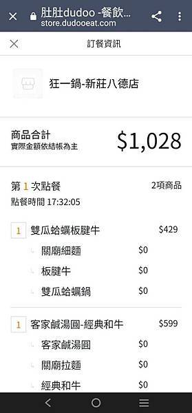 這次點了客家鹹湯圓鍋599元,含有經典和牛/關廟拉麵及雙瓜蛤蠣鍋429元,含有板腱牛/關廟細麵