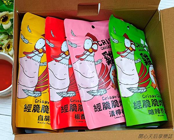最近我很少出門,大多和恩恩在家追劇,因此常上網買零食,在「永恆選物」買了『經脆脆Crispy Ching-豪華酥脆禮盒』,裏面有我一直很想吃的IG網紅推薦零食、網路熱銷正港台灣味、全球熱銷百萬包的【經脆脆炸雞皮餅乾】,有經典白胡椒/椒香麻辣/嗆辣芥末/清檸梅香等四種口味,也有經脆脆經典零食~麻辣老油條/100%蒜片/100%洋蔥脆片,多樣化的種類及口味很能滿足大人、小孩的口味喜好!【經脆脆炸雞皮餅乾】是台灣雞皮餅乾研發始祖(全台第一家),來自台中35年老店經家味研發,100%純正雞皮現炸製作!
