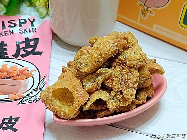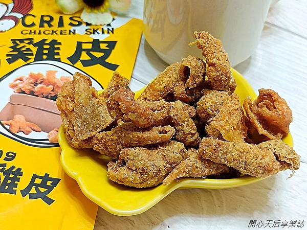 口感硬脆,吃得出雞皮原味,沒有油耗味,爽口不膩