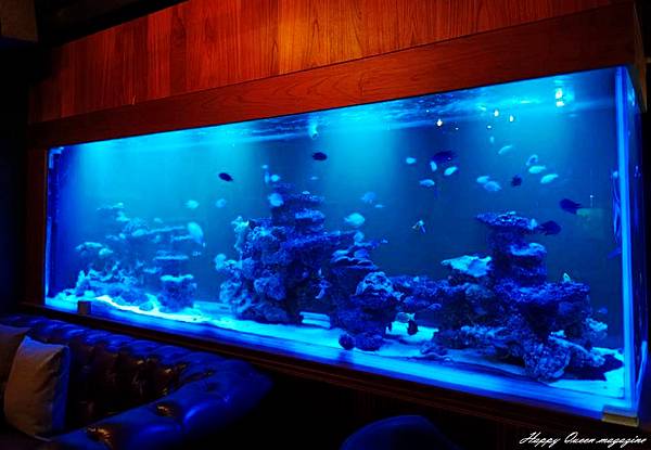 果然一走進『AQUA Lounge』就看到沙發區旁,有2座大型的海藍水族箱,加上典雅的裝潢、寧靜的氛圍,讓我們如同進入海底隧道,與外面車水馬龍的喧擾完全隔絶,好放鬆!
