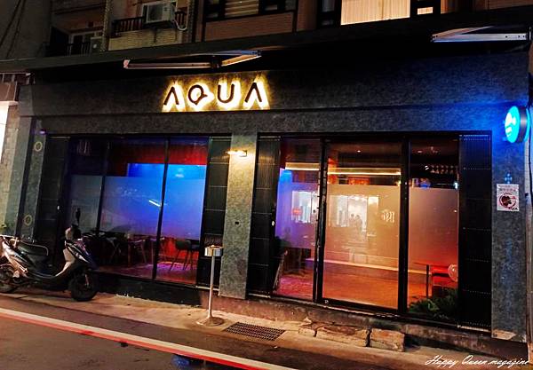 周日晚上來到捷運忠孝敦化站附近、位在忠孝東路四段216巷內的餐酒館『AQUA Lounge』,是東區知名的網美酒吧,主打海洋風,門面看起來時尚又低調,隱約看得見海洋藍的大型水族箱,讓我們迫不及待趕快進入~