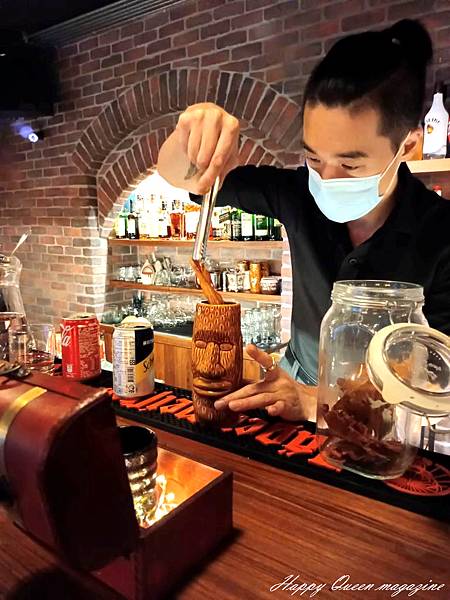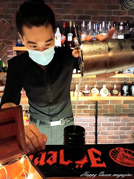 以vodka為基底,有著淡淡檸檬味的清爽口感,又帶有一絲煙燻味,也夾帶著香甜水果味,多層次的酒感醇厚又順口,卻有後勁,這不是妹酒!喜歡酒精%數較高的人可以點,外型及口味都佷獨特!(未成年請勿飲酒、酒後請勿開車)