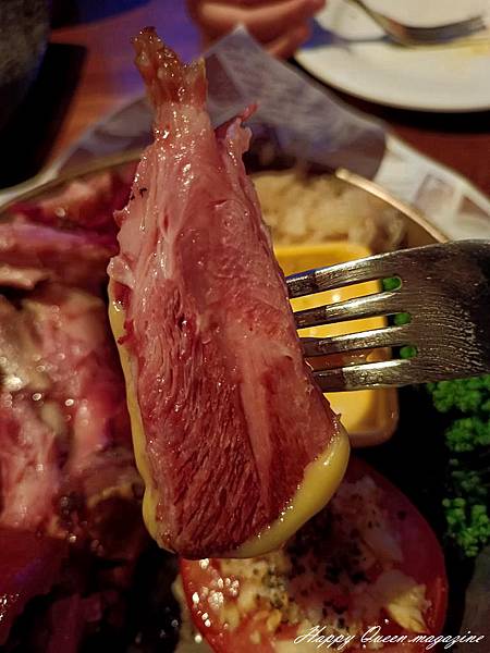 豬腳外皮不乾硬,口感彈韌好咀嚼,內層溫熱的豬腳肉,彈嫩柔嫩多汁,不油不膩,毫無豬腥味,不沾醬就很好吃,是難得好吃的德國豬腳!