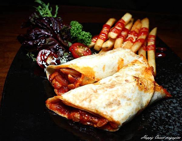 墨西哥雞肉捲$320,道地墨西哥口味,餅皮柔彈,吃起來微辣爽口