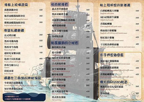 具有航海風的菜單(僅供參考,以現場提供為準)