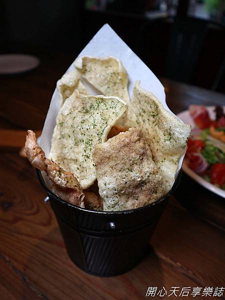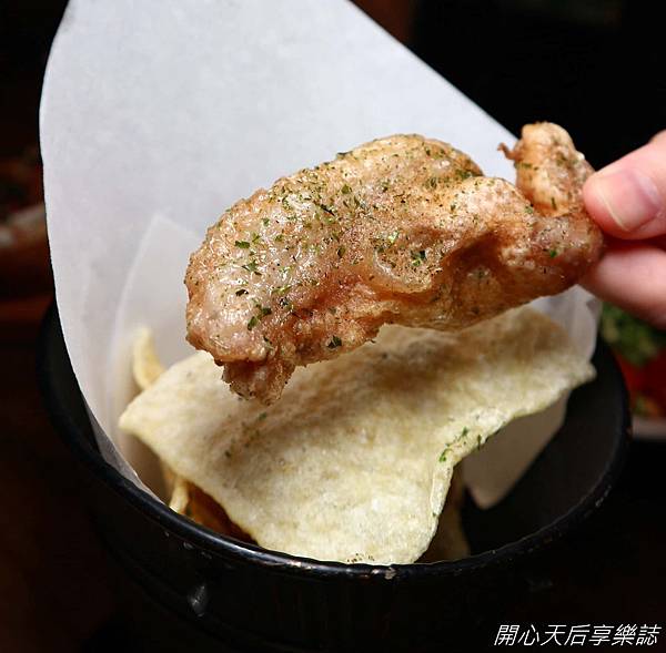 整片的豬皮跟雞皮,經過低溫烘培、高溫油炸等繁複工序,成就出香、酥、脆的口感