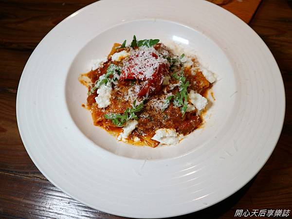 含有瑞可塔起司、油漬番茄、芝麻葉,醫汁是由牛/豬絞肉混合特調而成,微鹹甜散發濃郁起司香,水管麵口感飽滿彈牙,口味滿口奶香x牛/豬甜味,讓人吃完還想再吃!