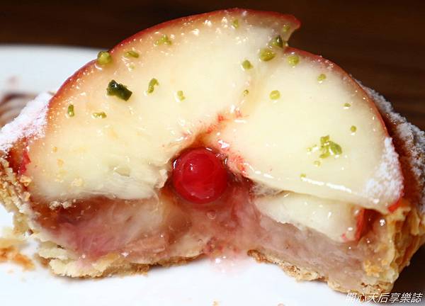 採用新鮮水蜜桃切片,底層是甜蜜的水蜜桃內餡,搭配可口的香、酥、脆派皮