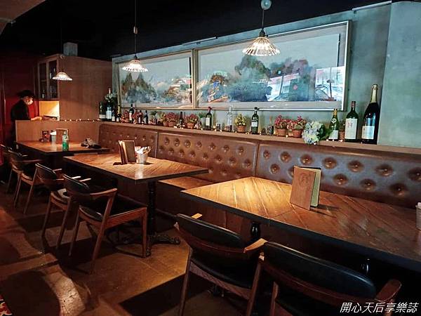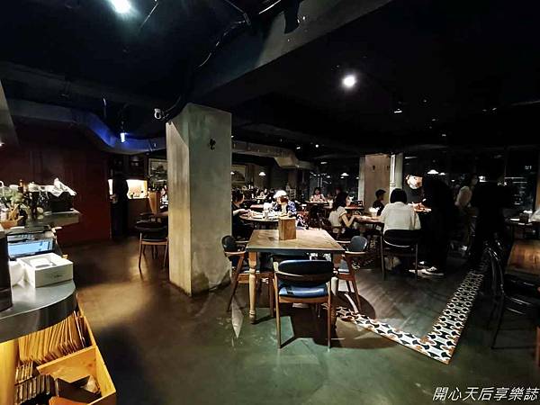 店內以深咖啡色木紋餐桌搭配水泥牆壁、花磚地面,輕工業風中帶有濃厚的義大利氣息