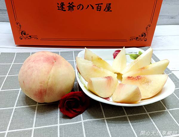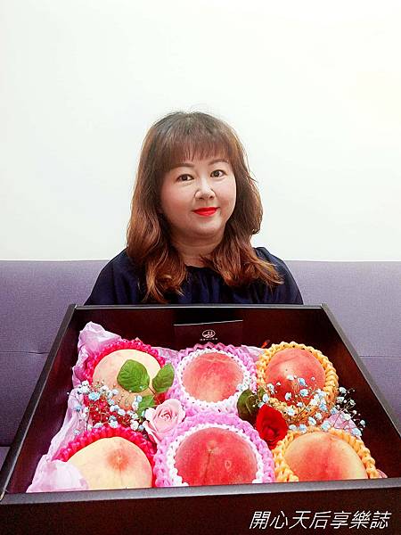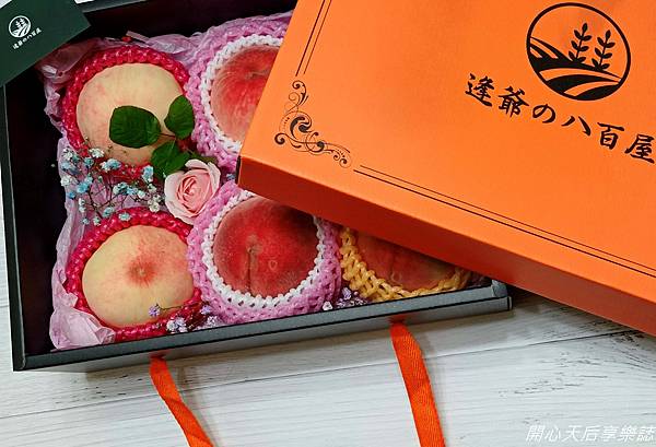 我迫不及待開箱,盒內除了有六大顆、三種不同國家的水蜜桃外,還點綴了不同顏色的漂亮玫瑰花、滿天星,好浪漫喔~因為逢爺希望每一位收到逢爺八百屋禮盒的客人都有被疼愛和重視的感覺,真是暖心!