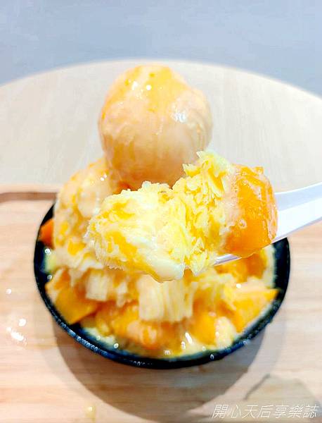 芒冰芒果綿綿冰,採用新鮮國產芒果、加上煉乳、自家熬製的芒果醬淋在招牌的綿綿冰上,再放上一大顆芒果冰淇淋,超誘人的啦~
