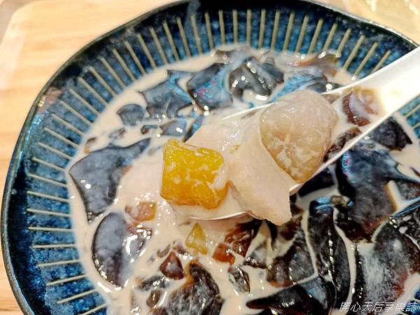 再淋上香濃奶油球,為仙草香增添奶甜味,更可口,吃起來甜而不膩,還吃得到芋頭小顆粒,料多實在,讓人一口接一口吃不停,吃了有飽足感!