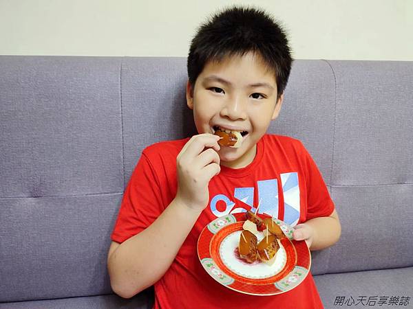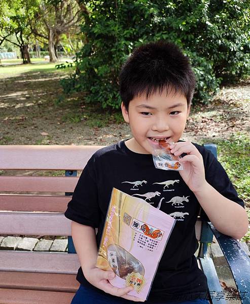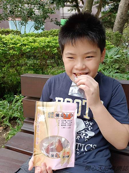 恩恩出門玩都帶著『陳家烏魚子一口包』,走到哪吃到哪,還一片接一片吃不停,吃得好開心!