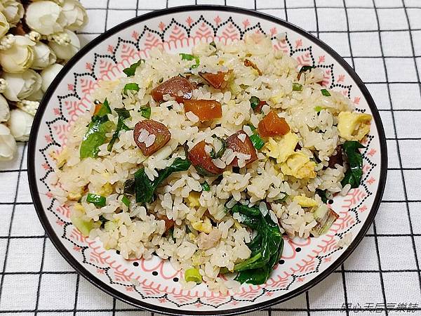 也可以將陳家烏魚子切成碎末,做成烏魚子青菜蛋炒飯,讓平淡無奇的青菜蛋炒飯變身成高級可口的炒飯,果然讓大人、小孩一下子全都吃光了~