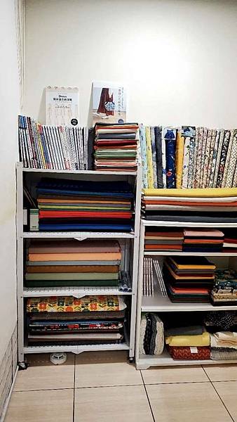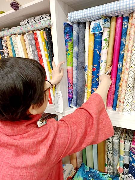 老師愛設計、愛手作,把賞布當成賞一幅畫,勤於參觀布展,收集各式美麗有設計感的布料,大部分是以購入自用、教學為主,所以非常重視品質來源,目前以日本、美國較高檔品質的優良布料為主,也購買一些通過歐盟認證的無毒布料;因為老師認為皮膚是人體最大的吸收器官,而染料大多帶有毒性,因此她格外重視無毒布料