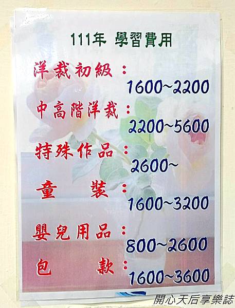 初級學費前2件,學費約$1600~2000左右,含畫版、學看洋裁書、量身、配款選料、配色美學、材質敎學....等