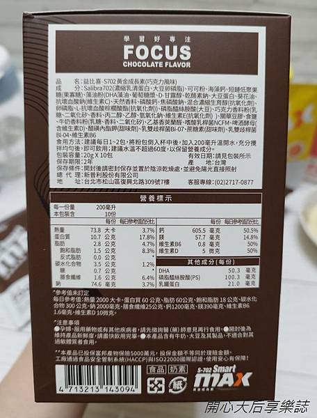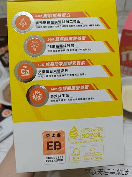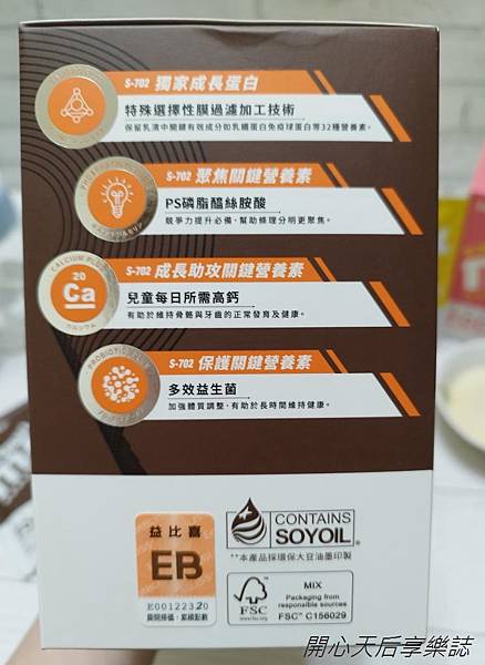 『Eatbliss益比喜 S702黃金成長素系列』外盒標示產品特色及相關說明:
