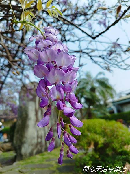我一向很不喜歡跟著人潮賞花,人多很沒有拍照品質及心情,最近想看紫藤花,但不想跑遠,選擇來到台北士林的『台北花卉村』賞花,在入口處左手邊大石立牌旁就看到一些紫藤花了!