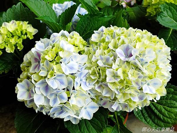 花庭園藝區入口處擺放一些3月很夯的繡球花,這款花色好別緻!