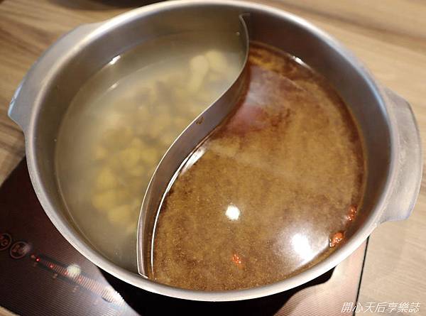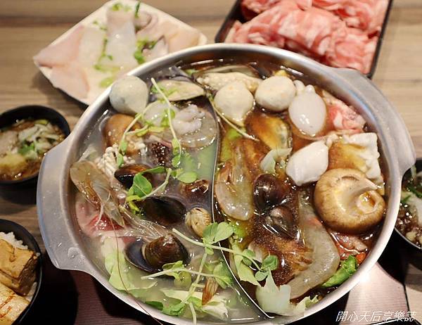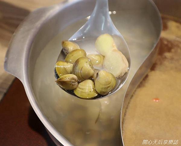 鴛鴦鍋選了花蓮漁場黃金蜆湯頭+$60、養生藥膳湯頭+$50