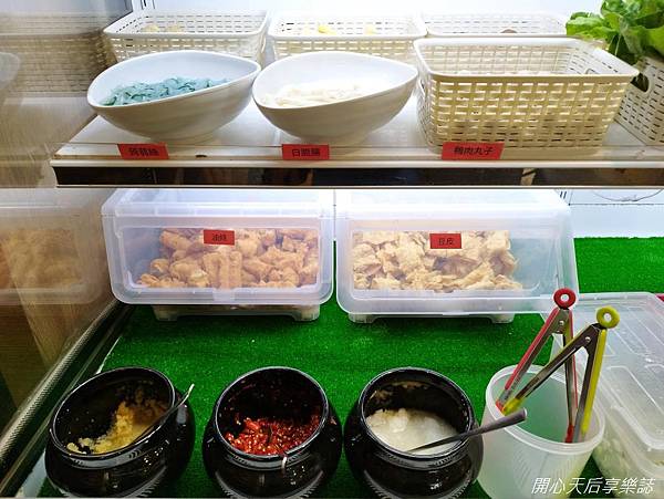 底層的醬料區,有好幾種新鮮辛香料、各式醬汁、豆皮、油條,都清楚標示名稱