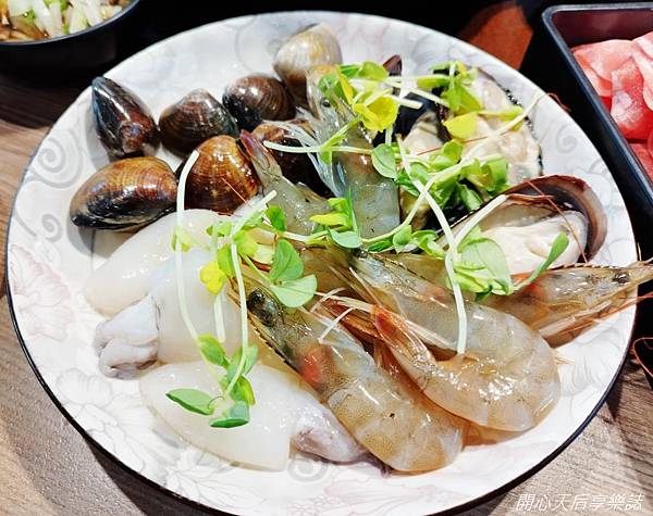 6種海鮮,有白蝦、巴沙魚片、鯛魚片、蛤蜊、小花枝、水鯊魚