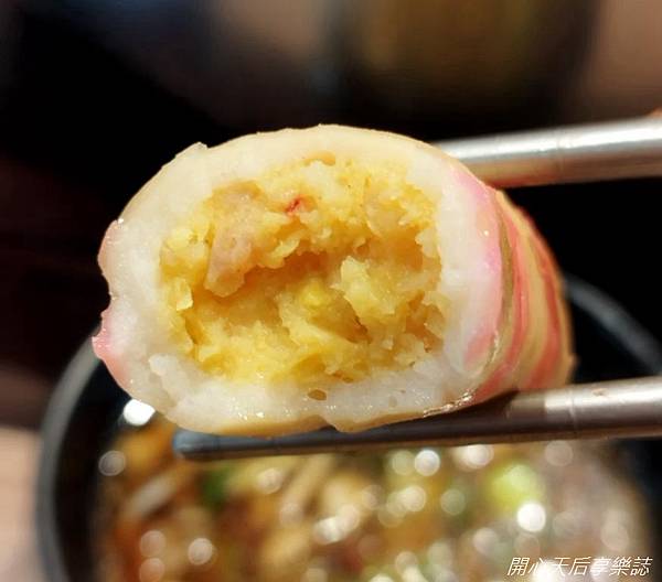 少見的仙女棒,腸衣包著魚漿、蛋黃,口感柔彈,吃起來有魚、蛋香。