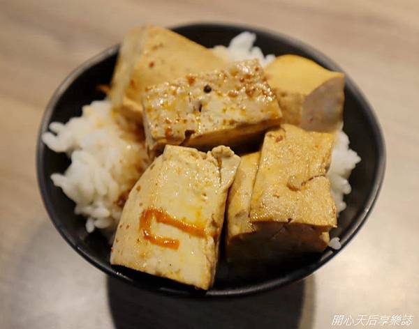 加上白飯,變成"麻辣臭豆腐飯",大塊的古早味臭豆腐,小辣微臭,吃了開胃又有飽足感 !