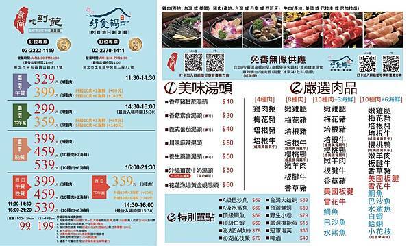 『食尚吃到飽涮涮鍋 中和旗艦店』菜單,價位親民