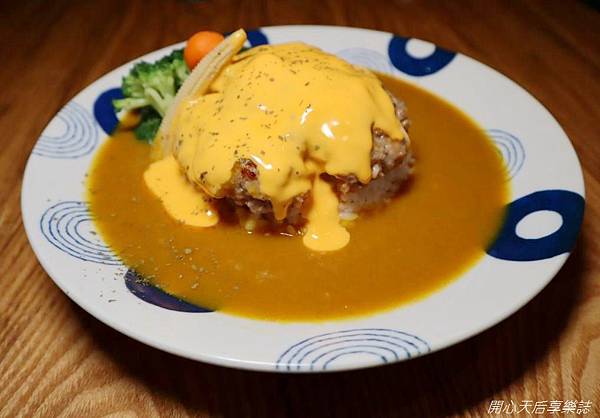 因為有如小山丘一般的歐姆蛋,閃著漂亮金黃光澤,濃厚蛋香混和甜美蔬果咖哩醬汁,交織成吸睛誘人的夢幻咖哩飯!