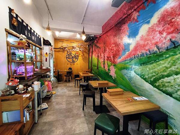 『呂舖食堂』店內座位不多,卻很有日式氛圍,看著壁畫,想像著在櫻花樹下用餐,很舒心。