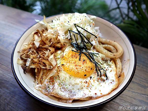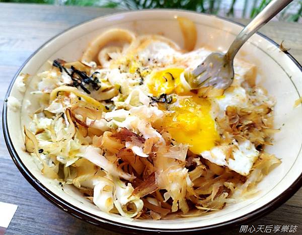 吃之前要將柴魚片及高麗菜絲拌勻,也可以將半熟蛋劃破,全部攪拌後一起吃,多層次口味,吃起來更美味!