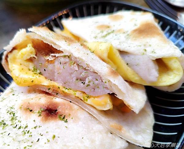 碳烤過的捲餅皮包裹著份量多的芋泥、起士,芋泥甜美綿密,吃起來甜中帶點奶鹹味,甜而不膩,吃完好滿足!